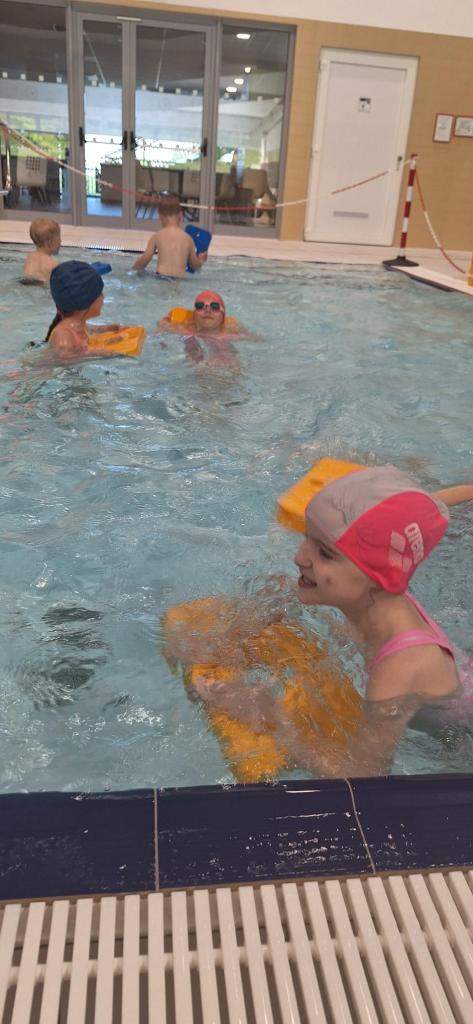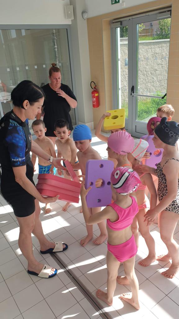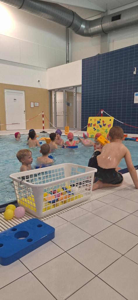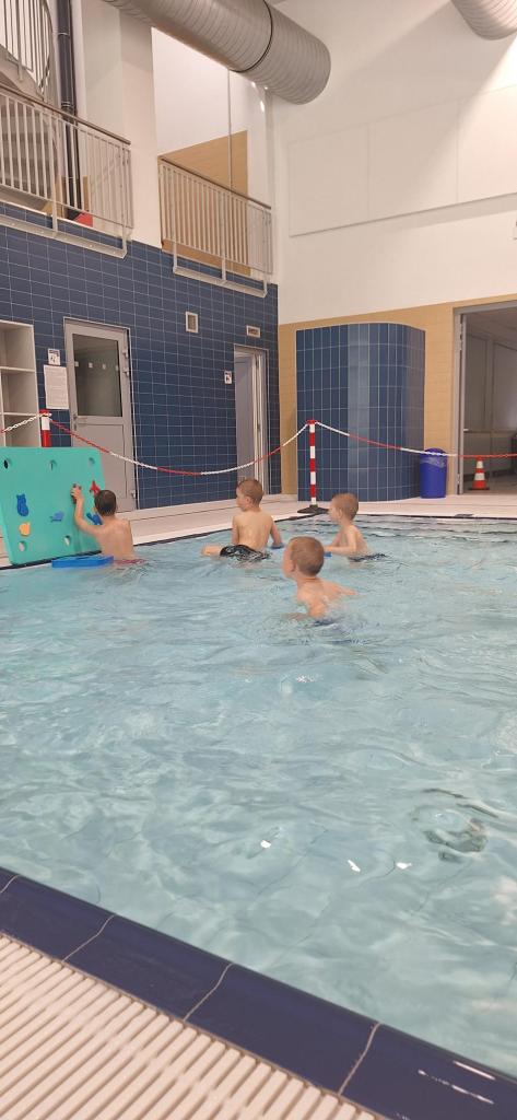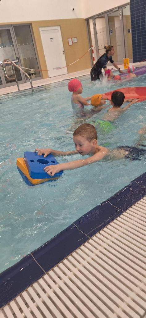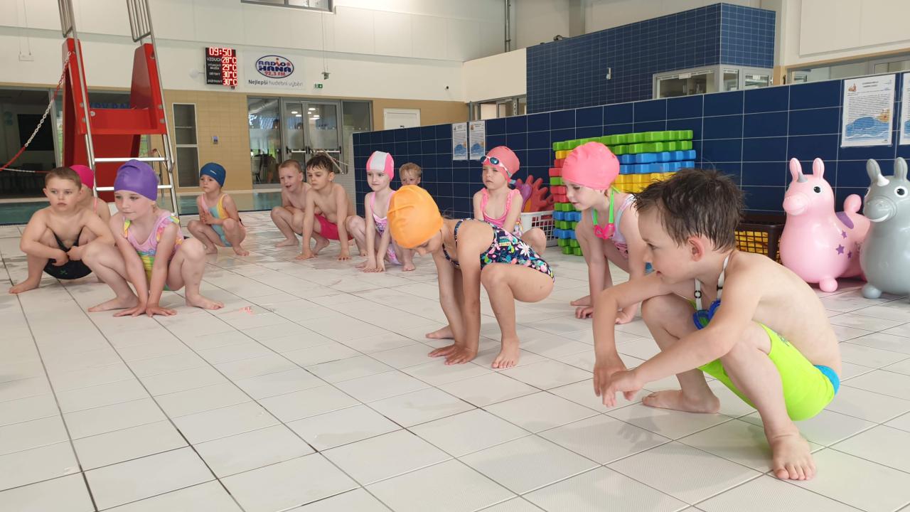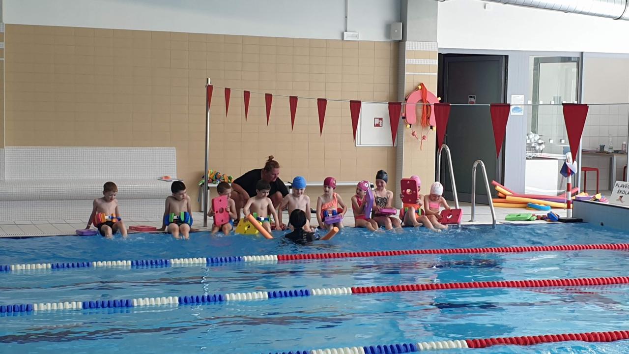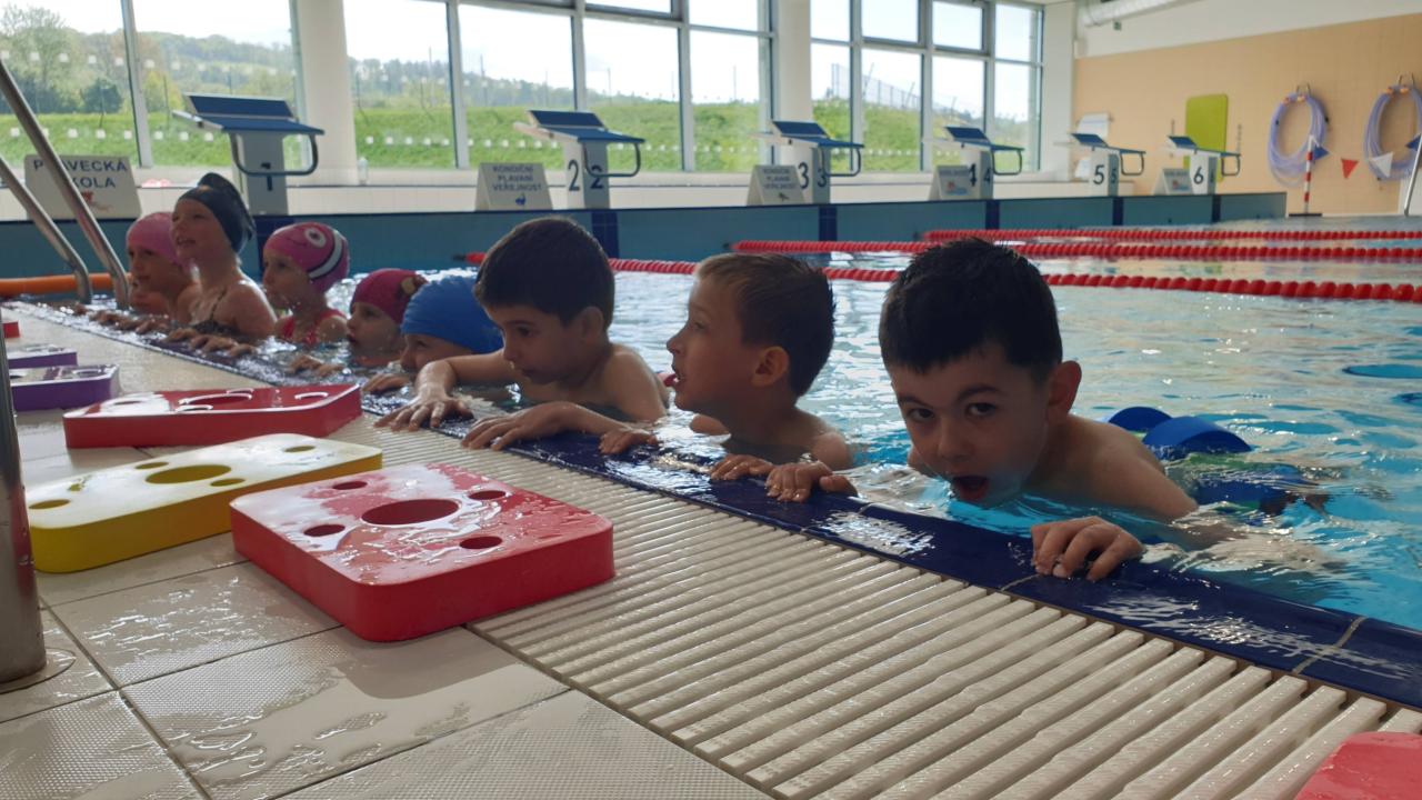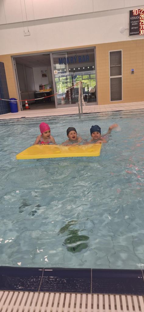 Na druhou lekci plavání se děti velmi těšily. Rychle s převlékly a už byly ve vodě. Plavaly s deskami, foukaly do vody, honily míčky. Moc si to užily.