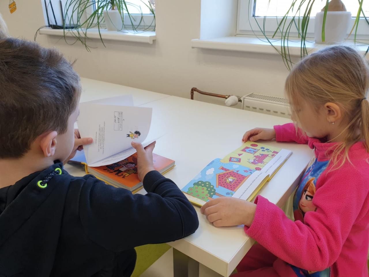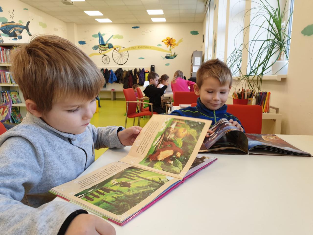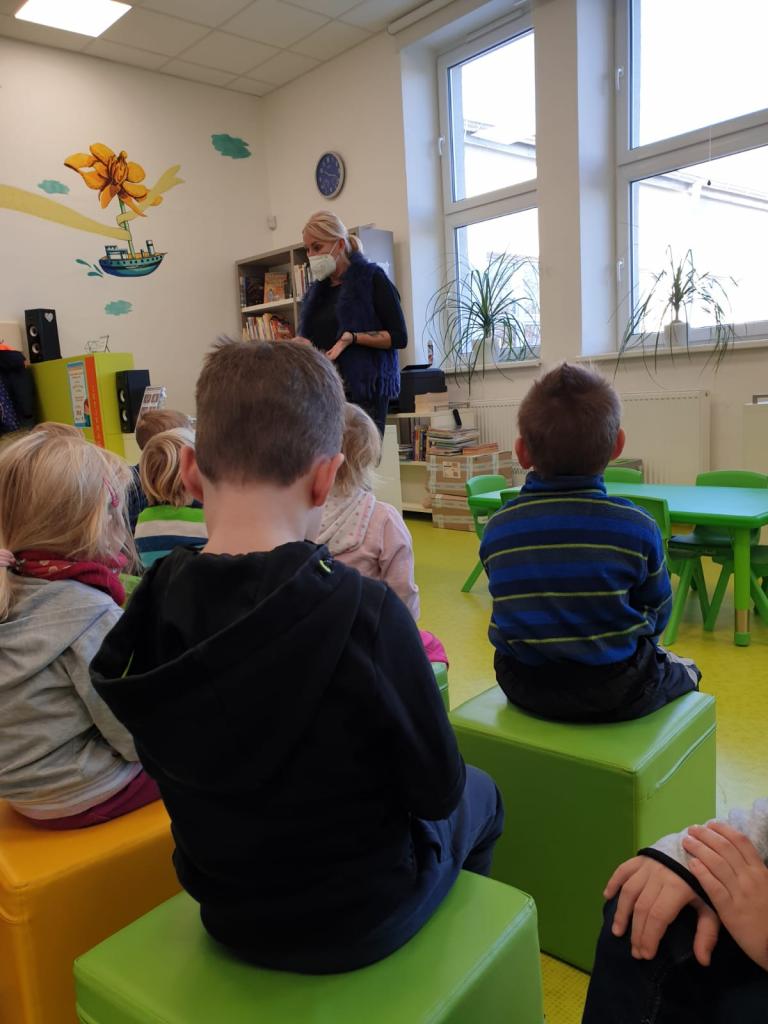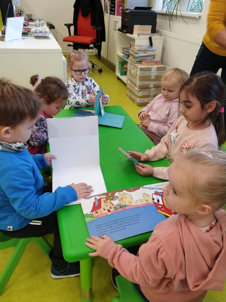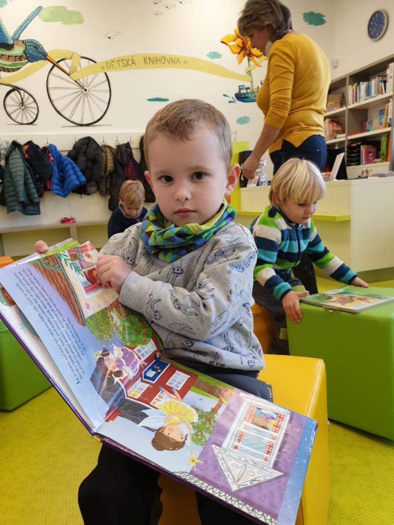 Děti ze třídy Sluníček se vypravily do naší městské knihovny. Seznámily se s paní knihovnicí, která jim ukázala pohádkové knížky, poučila je o správném chování ke knihám a přečetla jim pohádku. Na závěr si každý mohl půjčit knihu a prohlédnout si ji. Cestou zpátky si pohrály děti s barevným listím.
