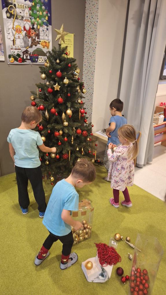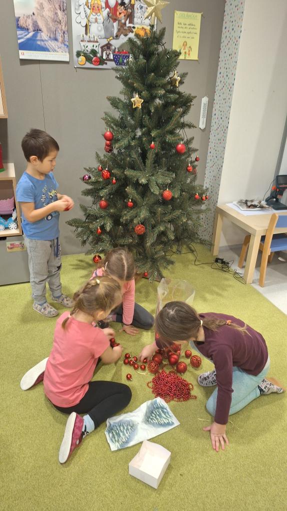Ve třídě Sluníček začaly velké přípravy na vánoce. Děti si společně nazdobily nový vánoční stromeček, pod dohledem paní učitelky upekly perníčky a vyrobily drobné dárky pro rodiče.