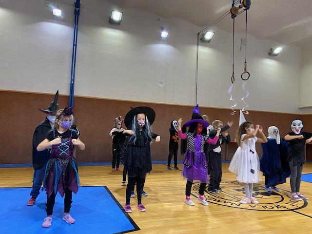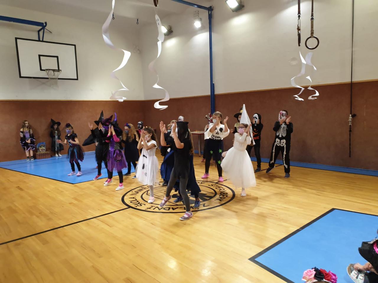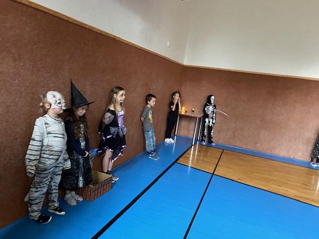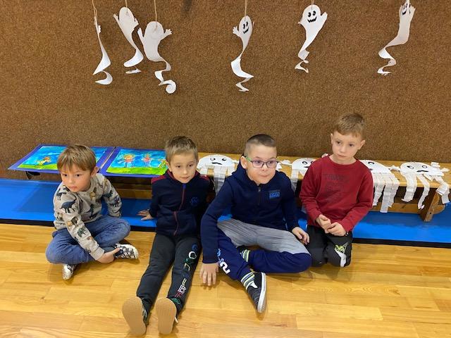 V rámci projektu "SPOKEŠ" děti vyrobily pro své kamarády do školy obrázky třídy a výrobky k Dušičkám. Předali jsme jim je v Dušičkovém reji, který pro nás připravili v tělocvičně základní školy. Plnili jsme různé úkoly a dostali jsme malého ducha na cestu.