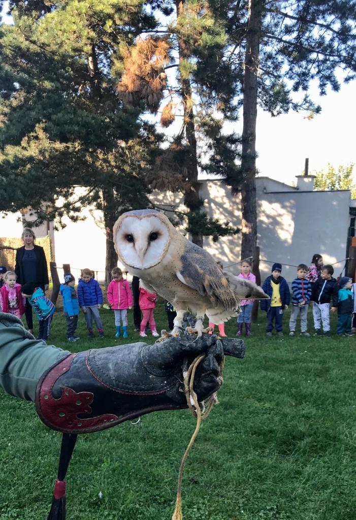 Na školní zahradě MŠ U Dráhy, která je specifická svým vybavením a prostředím pro enviromentální vzdělávání a výchovu dětí, proběhl atraktivní naučný program Dravci. Děti si prohlédly přítomné dravce zblízka, vyslechly si stručné představení o nich a jejich životě a zhlédly ukázku výcviku.