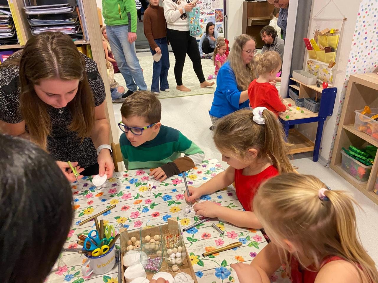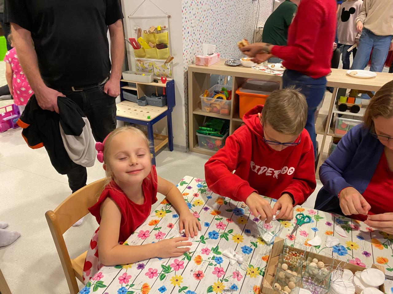 Také ve třídě Soviček byly hodné děti. A tak pod stromečkem byla velká spousta dárků. Děti vše pečlivě prozkoumaly . Odpoledne předvedly rodičům krátké pásmo koled a básní V dílničkách si vyrobily andělíčka a dřevěný vánoční stromeček. Také si pochutnávaly na cukroví a donesených dobrotách.