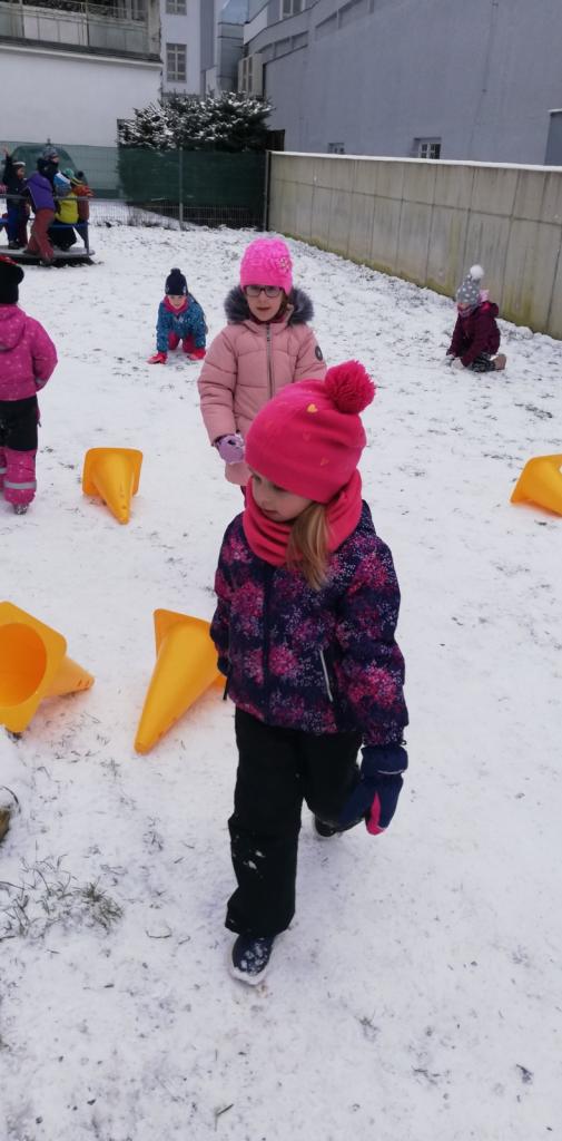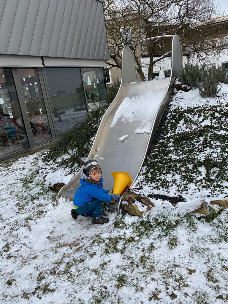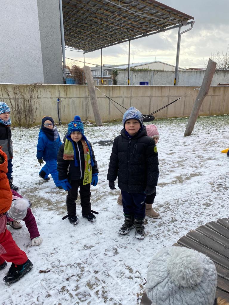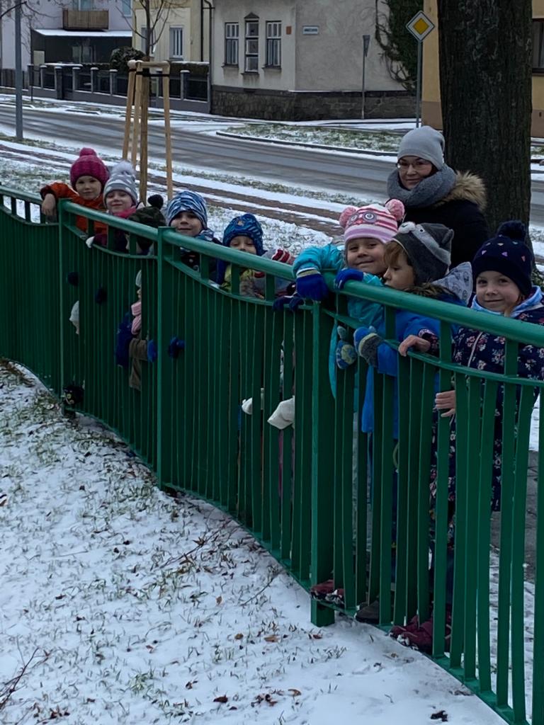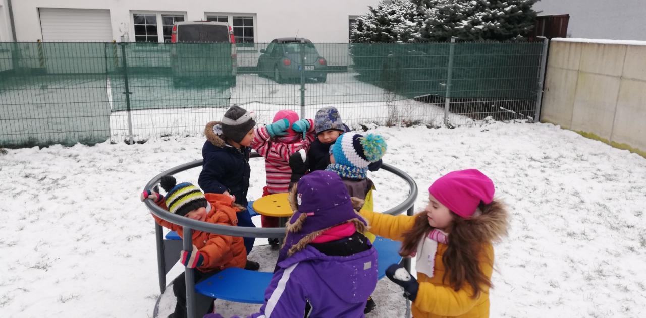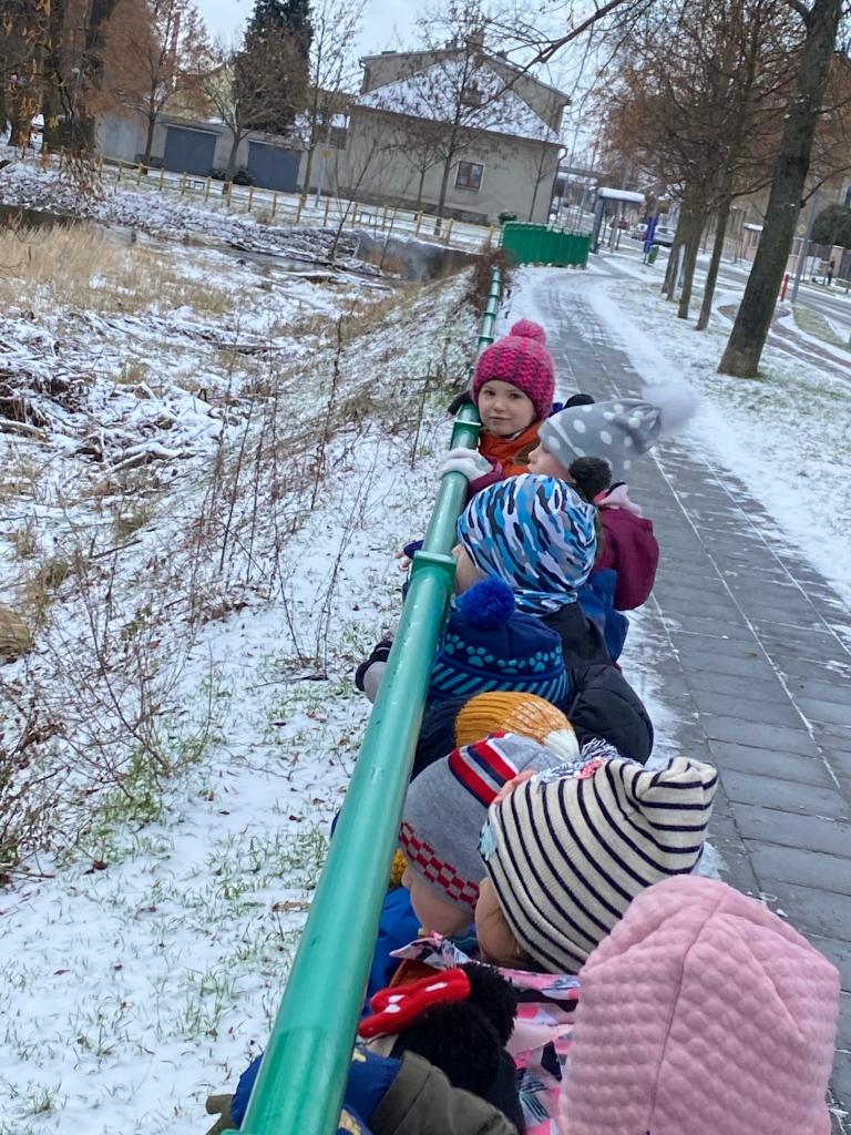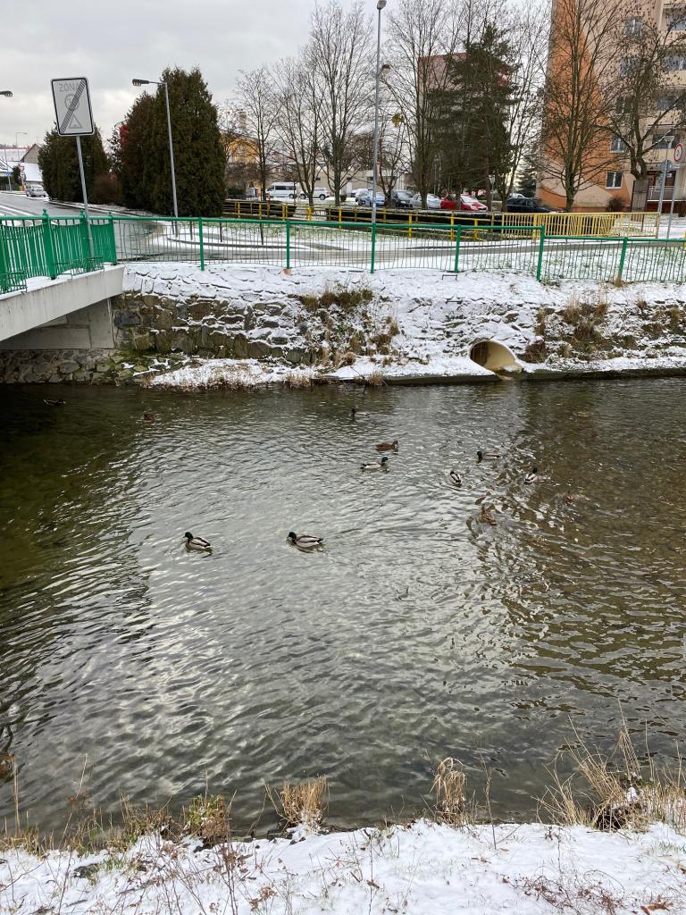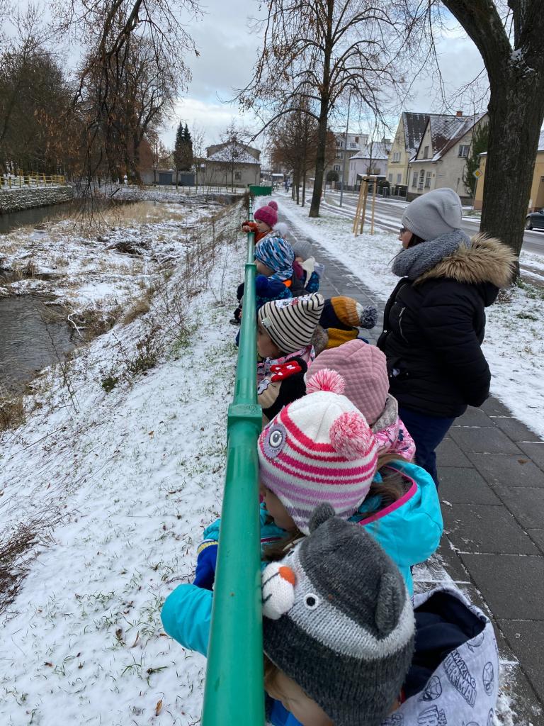 V mrazivém dni jsme se s dětmi vydali k potoku nakrmit kačenky. Děti si pak pohrály na školní zahradě.