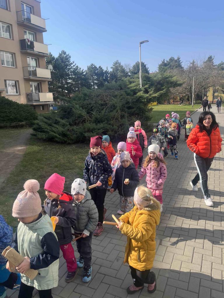 Děti z naší mateřské školy si připomněly starý lidový zvyk vynášení Moreny, kterým se symbolicky loučíme se zimou a vítáme příchod jara. Tento rok se o její výrobu z přírodních materiálů postarala třída Soviček. Za doprovodu hudebních nástrojů jsme ji ve společném průvodu odnesli k potoku.