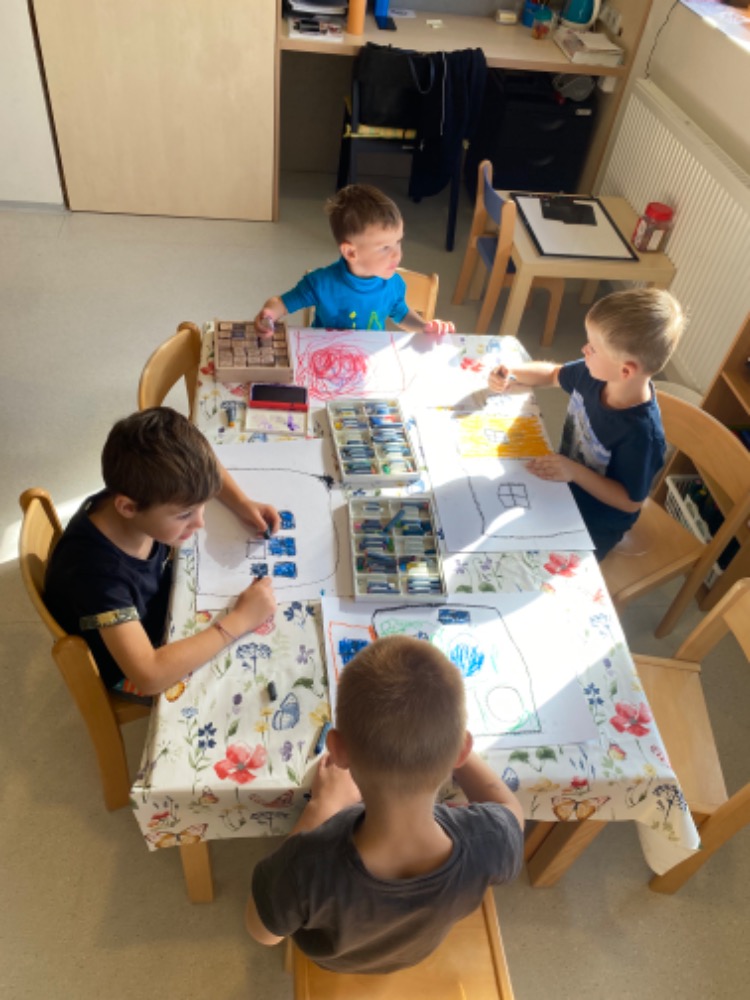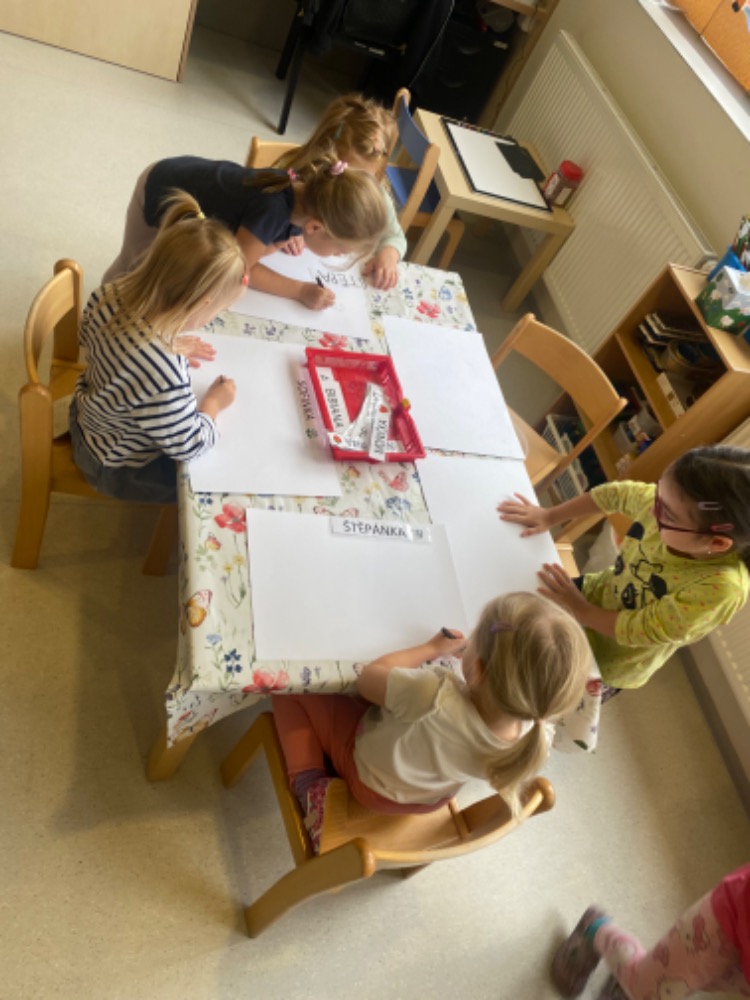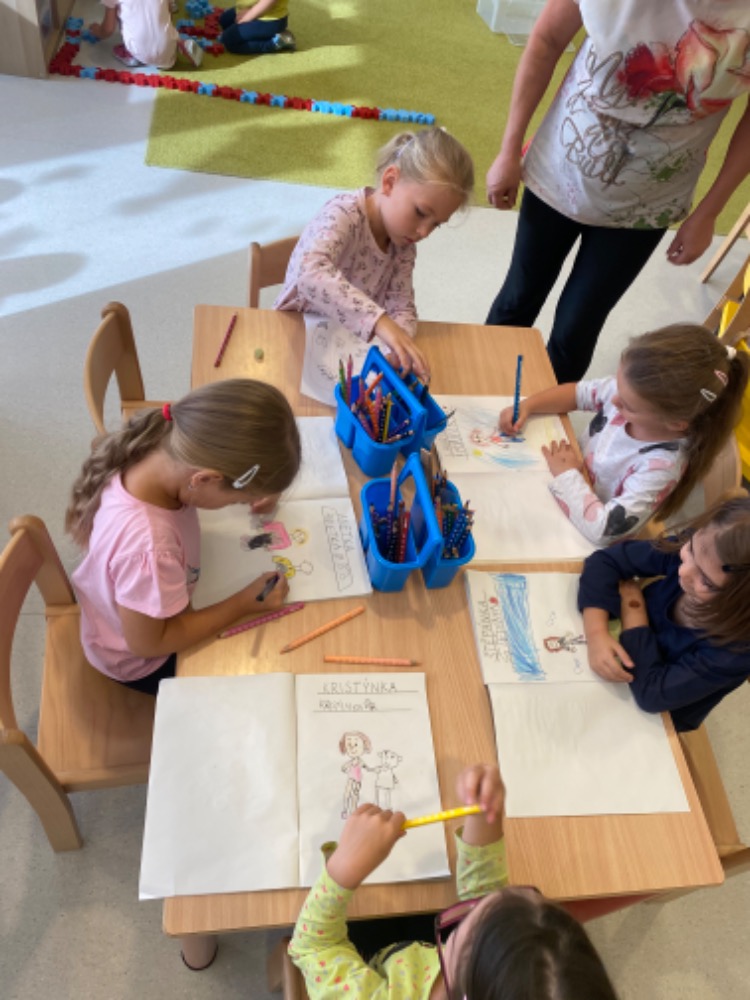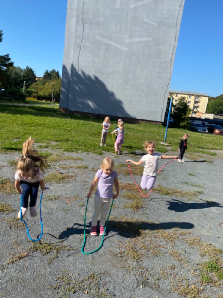 Naše první dny jsme strávili co nejvíce venku , dokud nám sluníčko hřálo. Děti si hrály na hřišti, staraly se o zahrádku a závodily ve sprintech. Ve školce jsme se seznamovali s novými kamarády, aktivitami a hračkami.