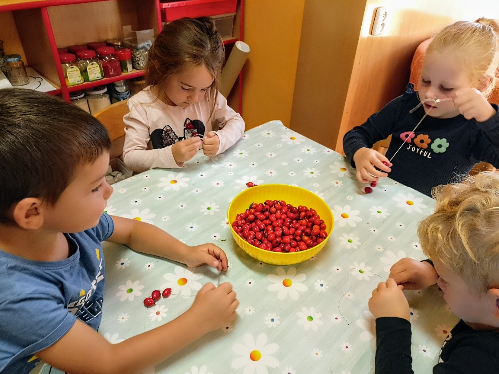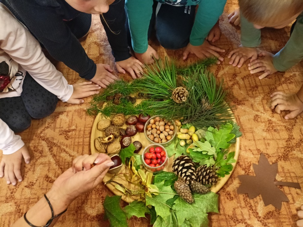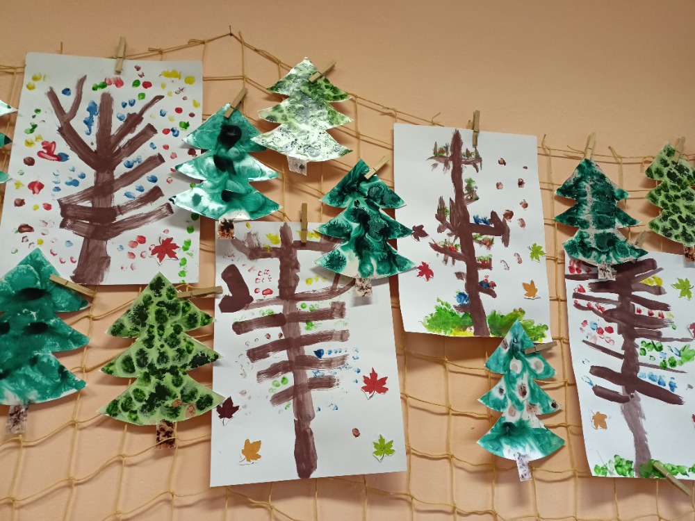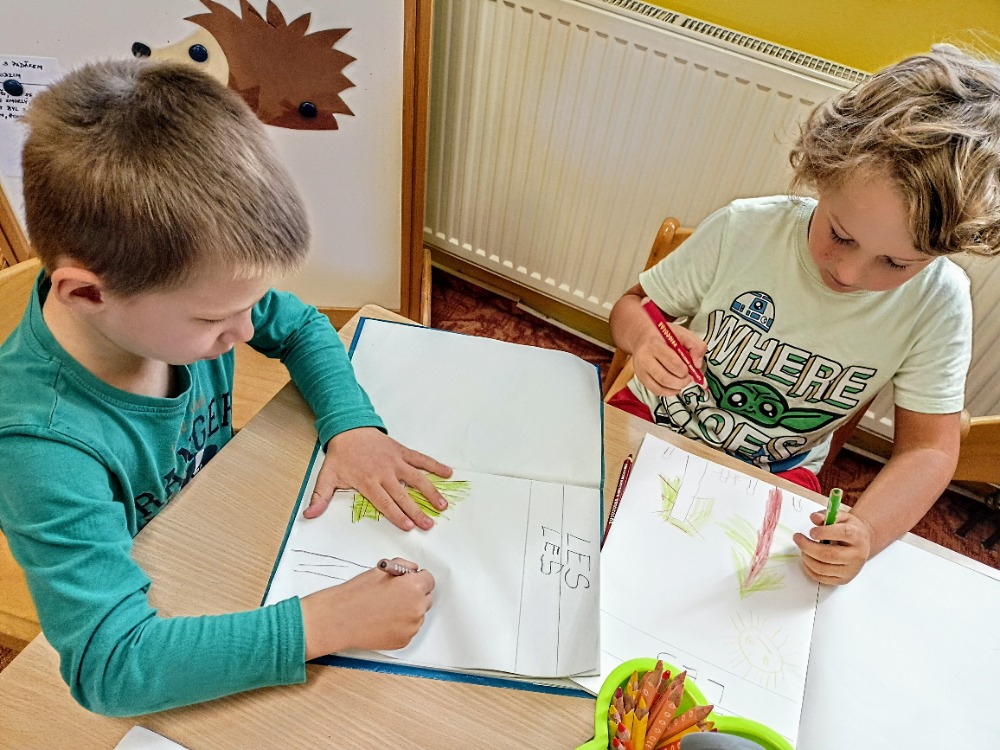 Ve třídě Lišek si děti povídaly o podzimu v lese. Využily krásné obrázky stromů, nasbírané přírodniny a také si něco z lesa namalovaly.