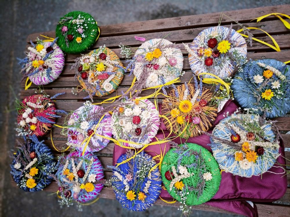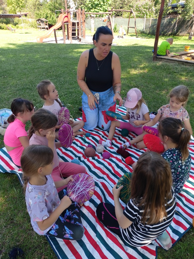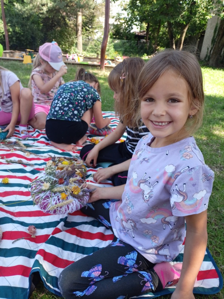 I na naší školce starší děti pod vedením floristky Kateřiny Faltýnek Houserkové vyráběly venku letní věnečky. Využily vlnu, obilí, různé trávy, levanduli a slaměnky. Všem se výrobky moc povedly a hrdě si je odnášely domů. Děkujeme.